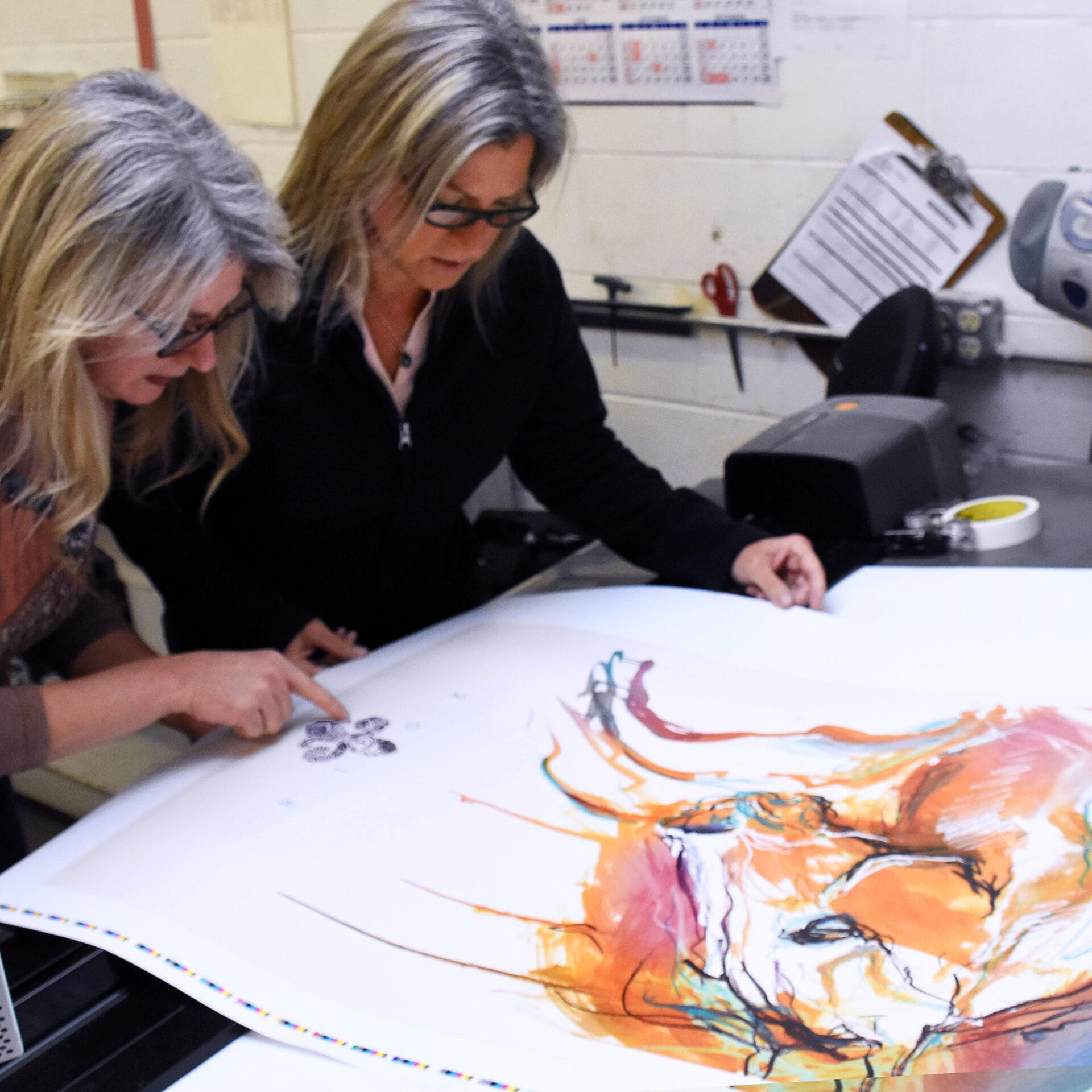 January 26, 2018. Louisville, KY. – A sign of spring this morning as the Kentucky Derby Festival’s 2018 poster rolled off the presses at Clark & Riggs in Louisville. This year’s poster was designed by Louisville artists and twin sisters – Jeaneen Barnhart and Doreen Barnhart DeHart. This is a five-peat for the sisters, as they also collaborated on artwork for the Festival’s Official Poster in 1994, 1997, 2009, and 2014.