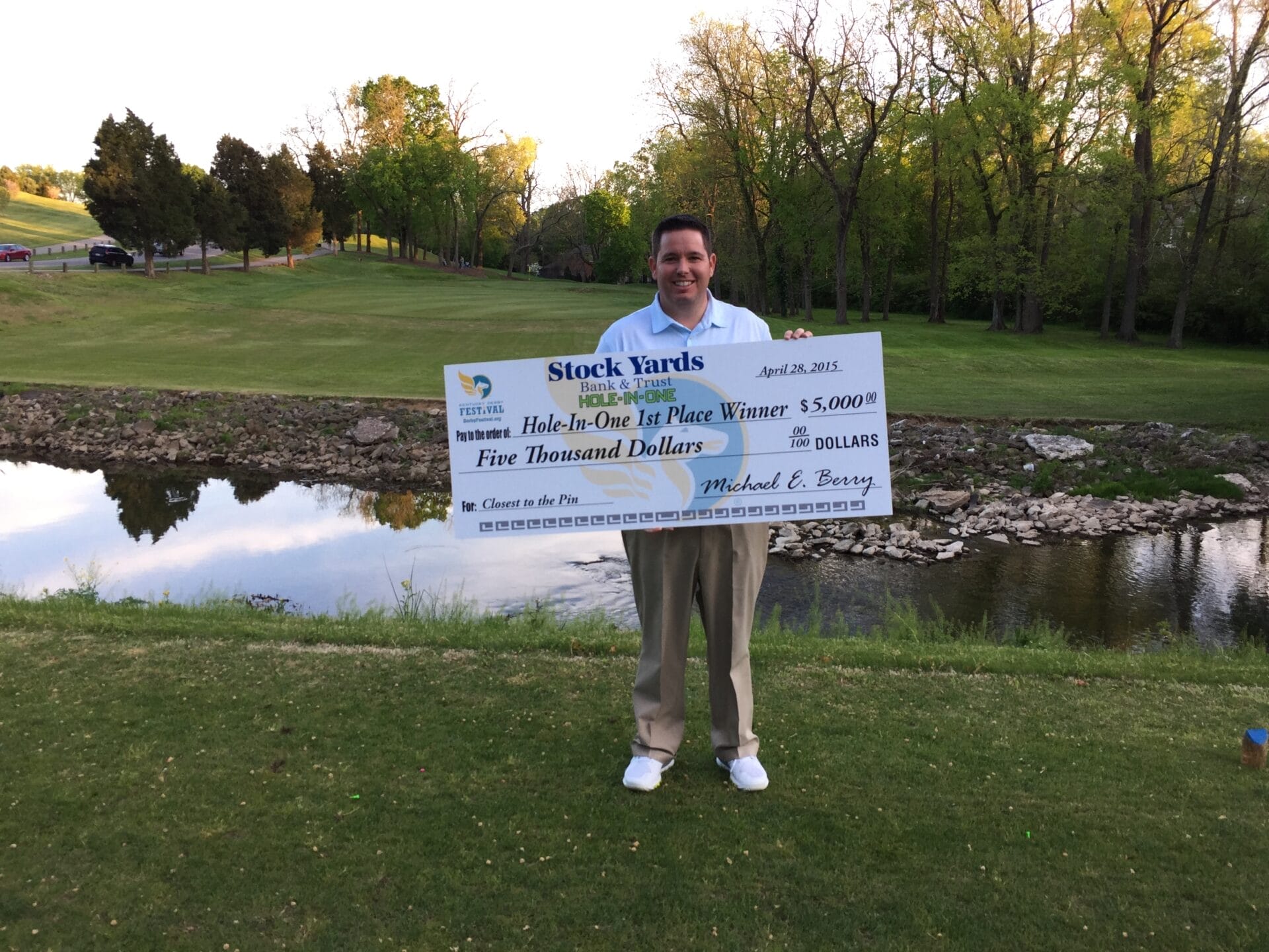 Jeff Clark of Louisville came closest to the pin, hitting his tee shot 3 feet and 10 ½ inches from the cup. Clark won a $5,000 first prize. This isn’t the first time Jeff has participated in the competition and he says his wife is somewhat responsible for his win.